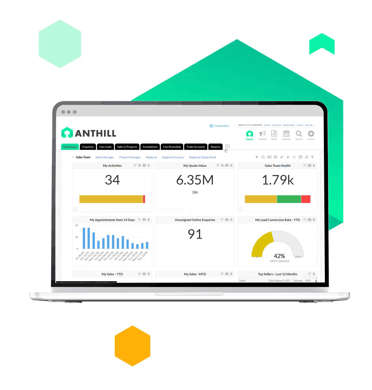 No more juggling numerous tools and login details. Anthill is a single source of truth, ensuring everyone works from the same, accurate dataset. You gain ultimate clarity across the business, from sales pipelines to project progress.